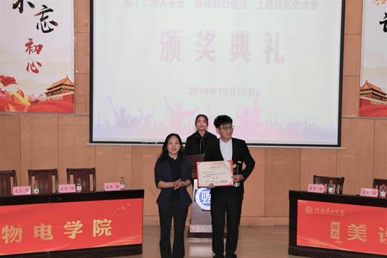 喻义东老师、雷蕾老师为11名优秀辩手颁奖,瞿述老师、柳周峰老师为季军外语公司、土建公司颁奖,徐振祥老师为亚军美设公司颁奖,徐小立老师为冠军球友会颁奖。